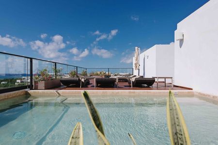Departamento en venta en Kuxtal Playa del Carmen, un complejo de 26 departamentos de lujo tipo penthouse en 4 niveles sobre la 5ta avenida, 4 locales comerciales en planta baja frente a un boulevard lleno de comercios, bares y los mejores restaurantes de Playa del Carmen. Todo esto a sólo unos pasos de la costa y el azul turquesa del mar Caribe.