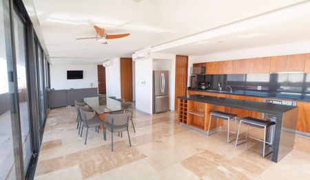 Con una superficie de 300 m2 en el 4to piso, de 3 niveles, cuenta con 3 recámaras con baño completo cada una, sala, comedor, cocina, 2 medios baños, área de lavandería, terraza en todos los niveles, roof garden con jacuzzi y piscina privada, asador y sala lounge. Totalmente equipado y amueblado, A/C minisplits, abanicos, cancelería, carpintería, cocina integral y listo para estrenar.